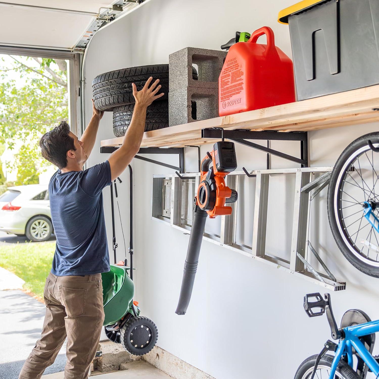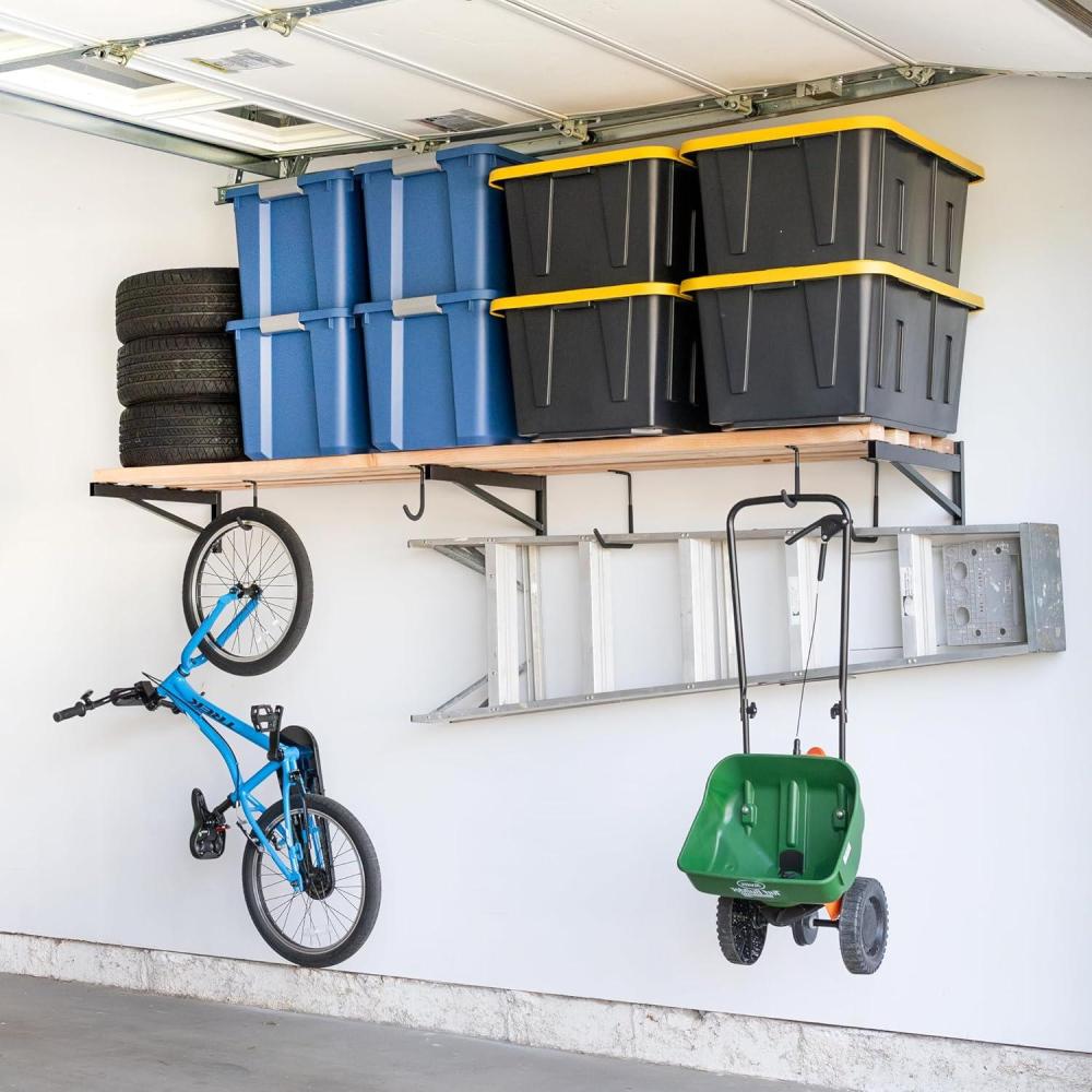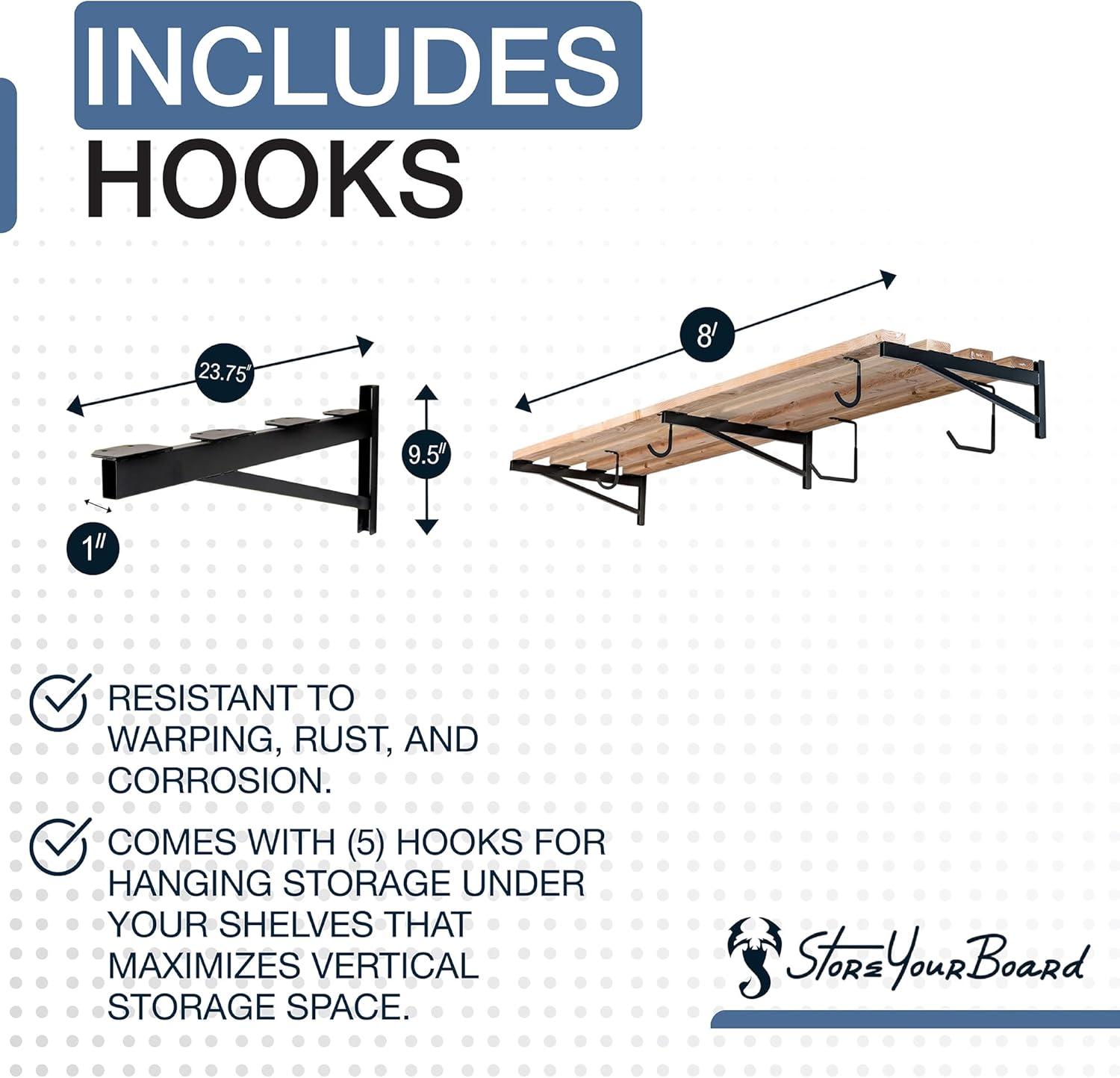 Storage Hooks Included: Comes with (5) hooks for hanging storage under your shelf. Perfect for large power tools, ladders, bicycles, hoses, and more. Easily install them into the wood for quick and easy bonus storage space.