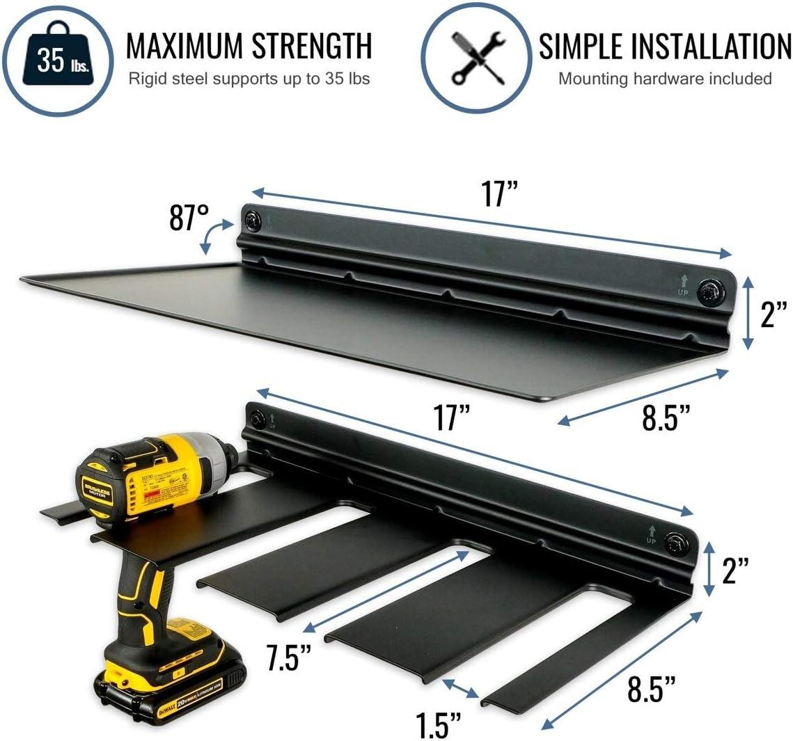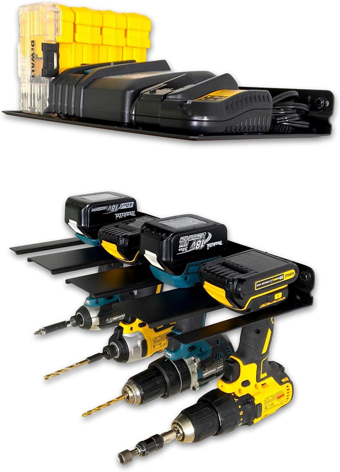 StoreYourBoard Electric Drill Storage Rack, Holds 4 Drills, Hanging Wall Mounted Organizer for Garage, Home, Workshop, Shed(Drill Rack + Shelf)