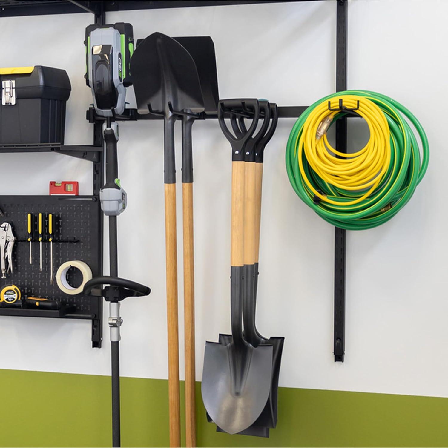 The G-Tool Pro is the ultimate storage system for transforming a cluttered garage into an efficient workspace. It features adjustable tool storage hooks, spacious shelving, and a pegboard system with locking attachments. This system holds up to 500 lbs, so you can load it up with everything your garage has in store. It’s perfect for yard tools, garden tools, power tools, and more. The tool attachments were designed for maximum capacity organization, allowing you to stack your tools for the most space-efficient storage yet. From shovels and rakes to weedeaters and chainsaws, this heavy-duty tool system takes all your tool clutter and makes your space functional again. With the quick-pull pin, it’s easy to adjust the attachments to create a setup that works for you. Organize your hand tools, too, with the included pegboard paneling and locking attachments. Our proprietary pegboard attachments were designed for secure hand tool storage, staying locked in place every time you reach for a tool. Upgrade to a purpose-built pegboard that eliminates loose, unsteady attachments and keeps your right-hand tools on deck. Instead of searching through workbench drawers and toolboxes for your most-used tools, keep everything organized, in sight. The pegboard is perfect for screwdrivers, electric drills, wrenches, hammers, saws, and more. The spacious wire shelving provides a stable surface for bins, totes, toolboxes, and more. This heavy-duty system is made from industrial-grade steel and aluminum with a durable powder coating, ensuring rock-solid storage made from quality components that will outlive you. The G-Tool Pro was proudly designed in-house by our Product Team at our headquarters in Troy, Virginia. Since 2009, we’ve been creating functional storage solutions for your garage, tools, sports equipment, and more. Every product is 100% original and meticulously engineered.