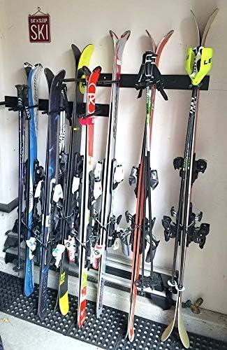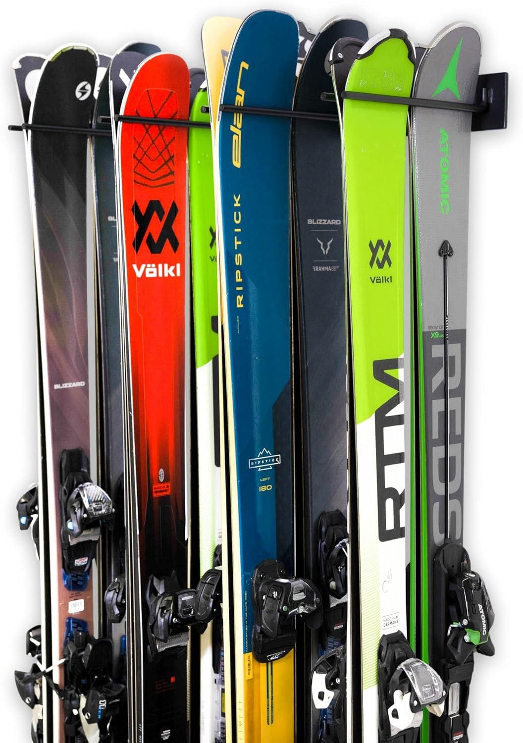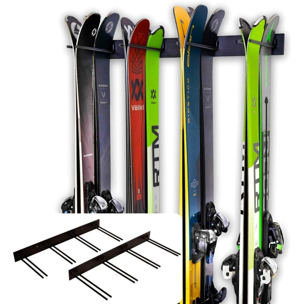 Heavy-Duty Ski Rack For Garage: Wall-mounted ski storage rack holds up to 8 pairs of skis to keep your gear off the ground and organized. Ideal for garage ski storage, ski shops, condos, and basements.