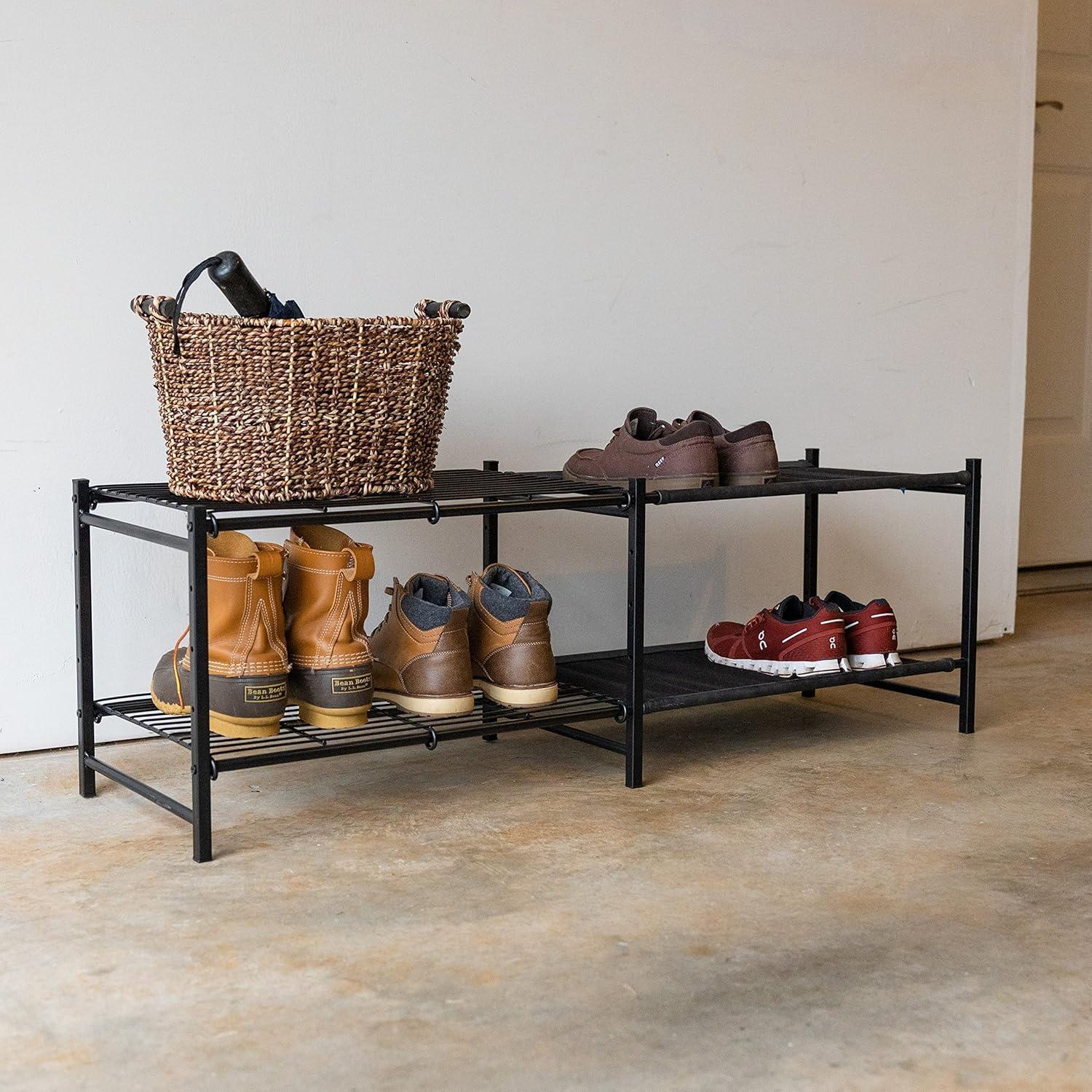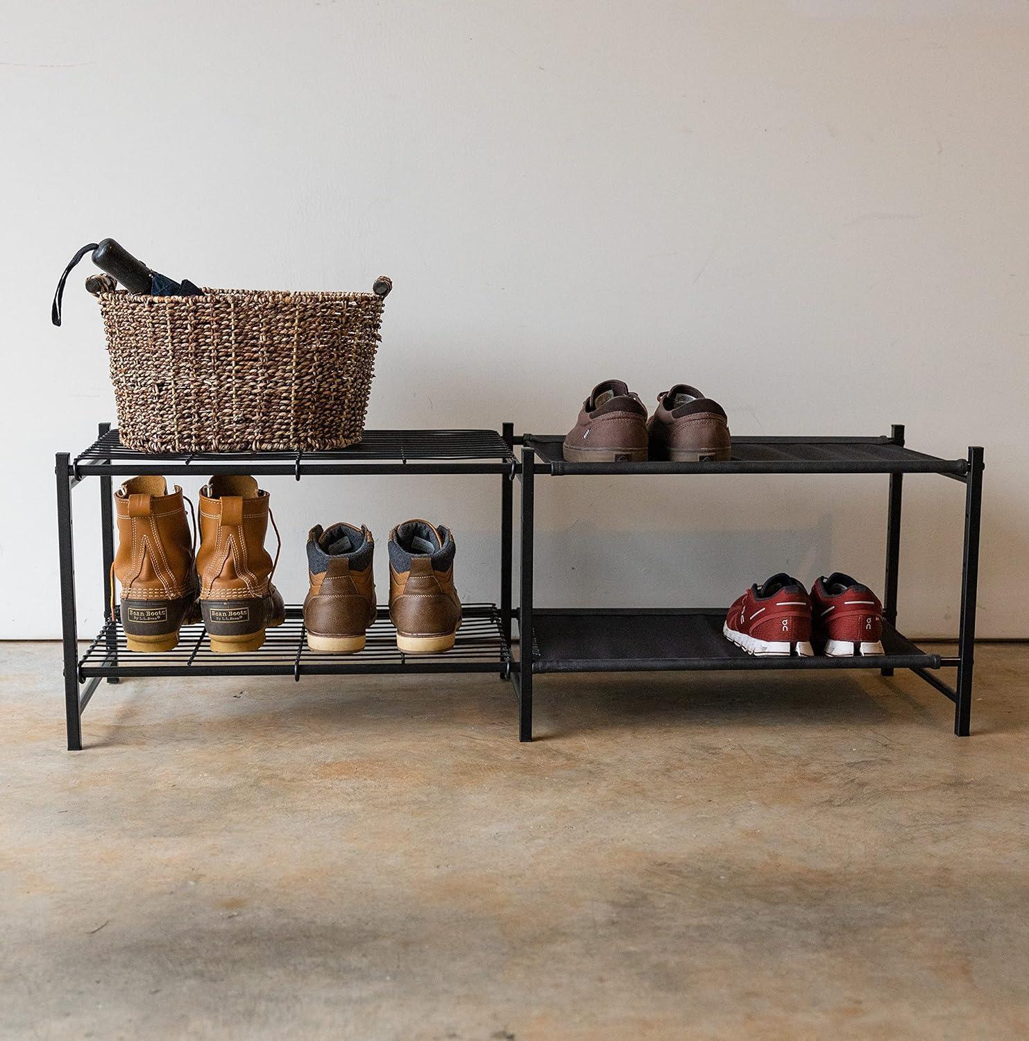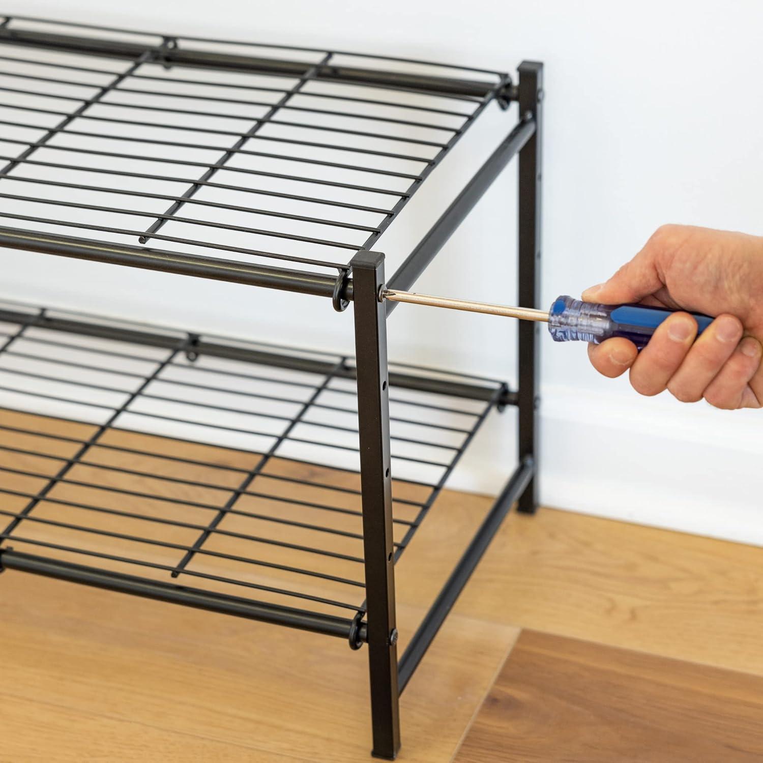 imageTeal Triangle Aspen Double Shoe Rack Storage Organizer  Sturdy TwoTier Shoe Caddy for Floor Use  Heavy Duty Shoe Storage Rack for Entryway or Closet  Durable ampamp SpaceSaving Shoe OrganizerBlack WireFabric
