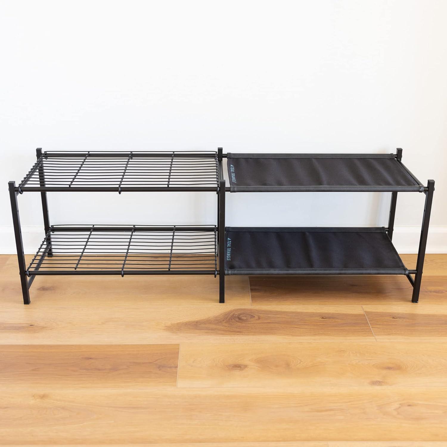 Teal Triangle Aspen Double Shoe Rack Storage Organizer | Sturdy Two-Tier Shoe Caddy for Floor Use | Heavy Duty Shoe Storage Rack for Entryway or Closet | Durable & Space-Saving Shoe Organizer(Black Wire/Fabric)