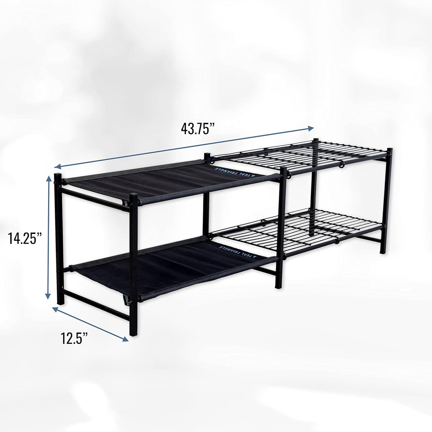 Teal Triangle Aspen Double Shoe Rack Storage Organizer | Sturdy Two-Tier Shoe Caddy for Floor Use | Heavy Duty Shoe Storage Rack for Entryway or Closet | Durable & Space-Saving Shoe Organizer(Black Fabric)